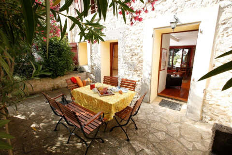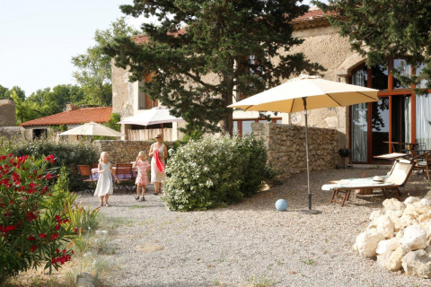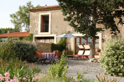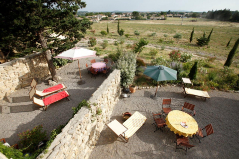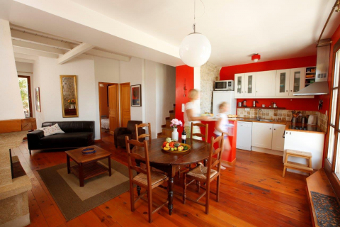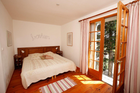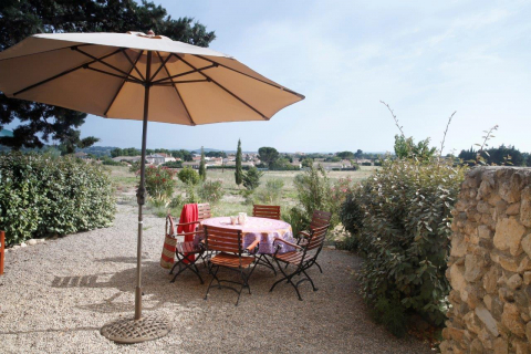 Das Appartement hat zwei Terrassen: Die großzügige Südterrasse dient als direkte Erweiterung des Wohnraums. Von dort hat man einen Traumblick über das Feld aufs Dorf und die Pyrenäen. Die gemütliche Nordterrasse liegt Richtung Innenhof.